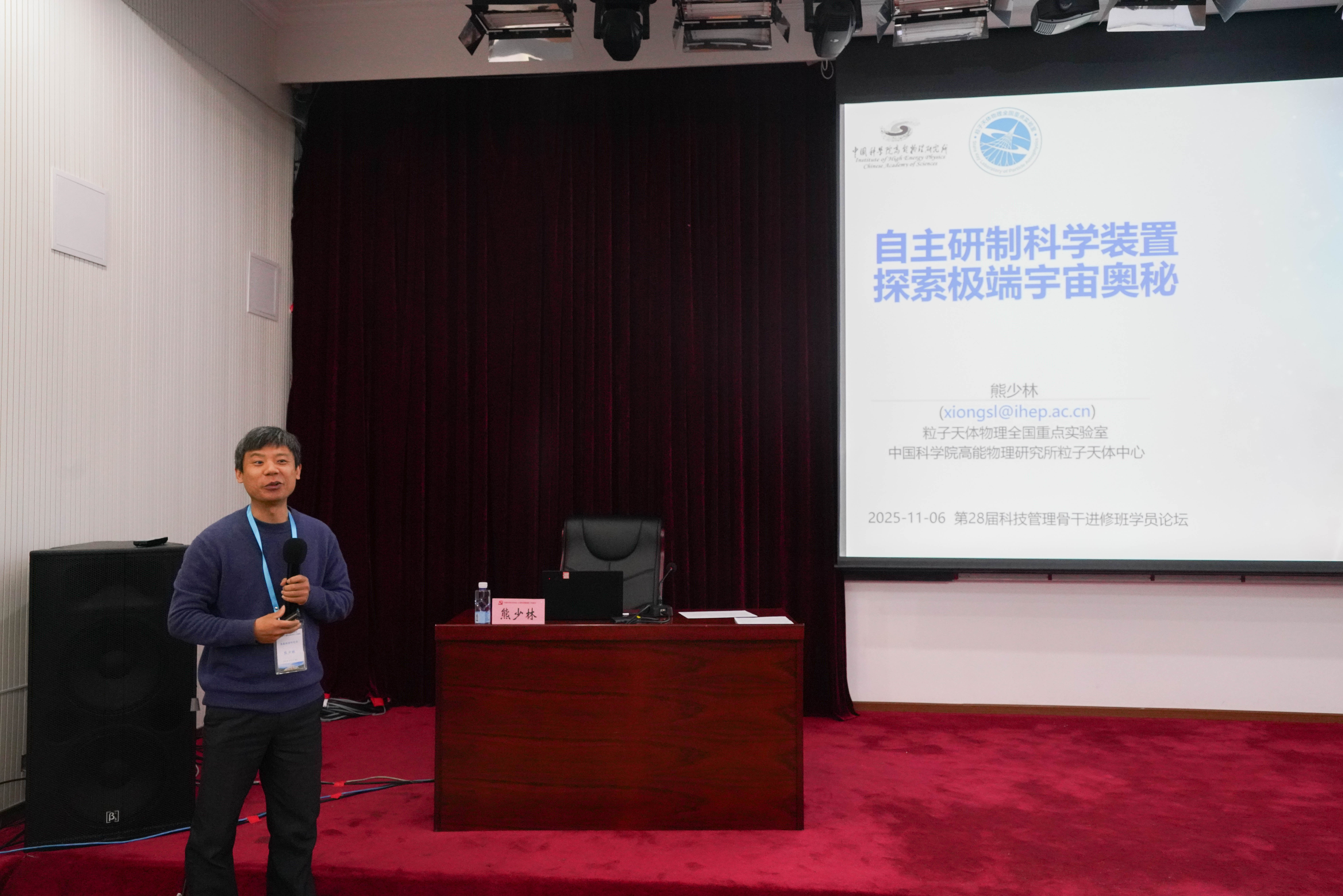 2025年11月6日上午,中国科学院党校第28期科技管理骨干进修班第三期学员论坛在雁栖湖校区多功能厅举办。党的十八大以来,党中央确立 2035 年建成科技强国的奋斗目标。习近平总书记在 2024 年全国科技大会等会议上强调,要锚定这一目标,加强顶层设计和统筹谋划,加快实现高水平科技自立自强。本次学员论坛围绕“建立大科学装置,助力科技强国”这一主题,由六位来自不同研究所的学员围绕建设大科学装置、攻坚重大科技任务和抢占科技制高点三个方面,分享了各自单位概况、研究领域发展态势和研究团队创新成果。本次论坛由新疆生态与地理研究所周晓兵学员主持。