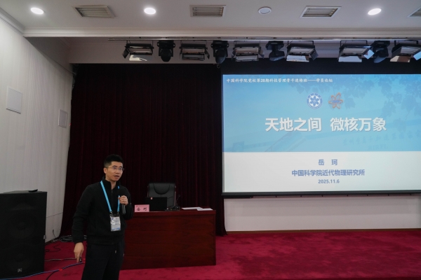 近代物理研究所岳珂学员以《天地之间,微核万象》为题,生动介绍了核物理与核技术的研究对象、方法、工具、应用场景以及近代物理所建设运行的大科学装置。结合研究所依托大装置努力抢占核科学与技术领域科技制高点的情况,详细介绍了近代物理所探索元素存在极限、冲击合成119号新元素的进展;以及在基于加速器的精准高效放疗技术研究、装置研发方面取得的成效和未来的计划。最后,介绍了利用重离子束辐照创制重离子微孔膜、超黑材料和吸能材料的进展,及其在高技术和民生领域的应用前景。