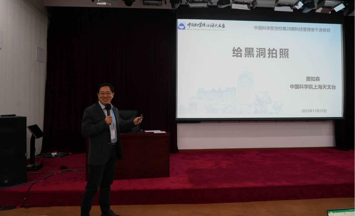 上海天文台路如森学员以《给黑洞拍照》为题,首先介绍了中国科学院上海天文台的相关情况,然后系统梳理了从爱因斯坦广义相对论的百年验证,到其在导航系统中的实际应用,直至人类成功捕获黑洞影像的完整科研脉络。报告进一步指出,我国正通过布局科技创新重大专项,积极投身这一前沿领域,此举将有力推动科技自立自强,为我国抢占未来天文研究的战略制高点奠定坚实基础,展现出服务人类宇宙探索事业的深远格局。