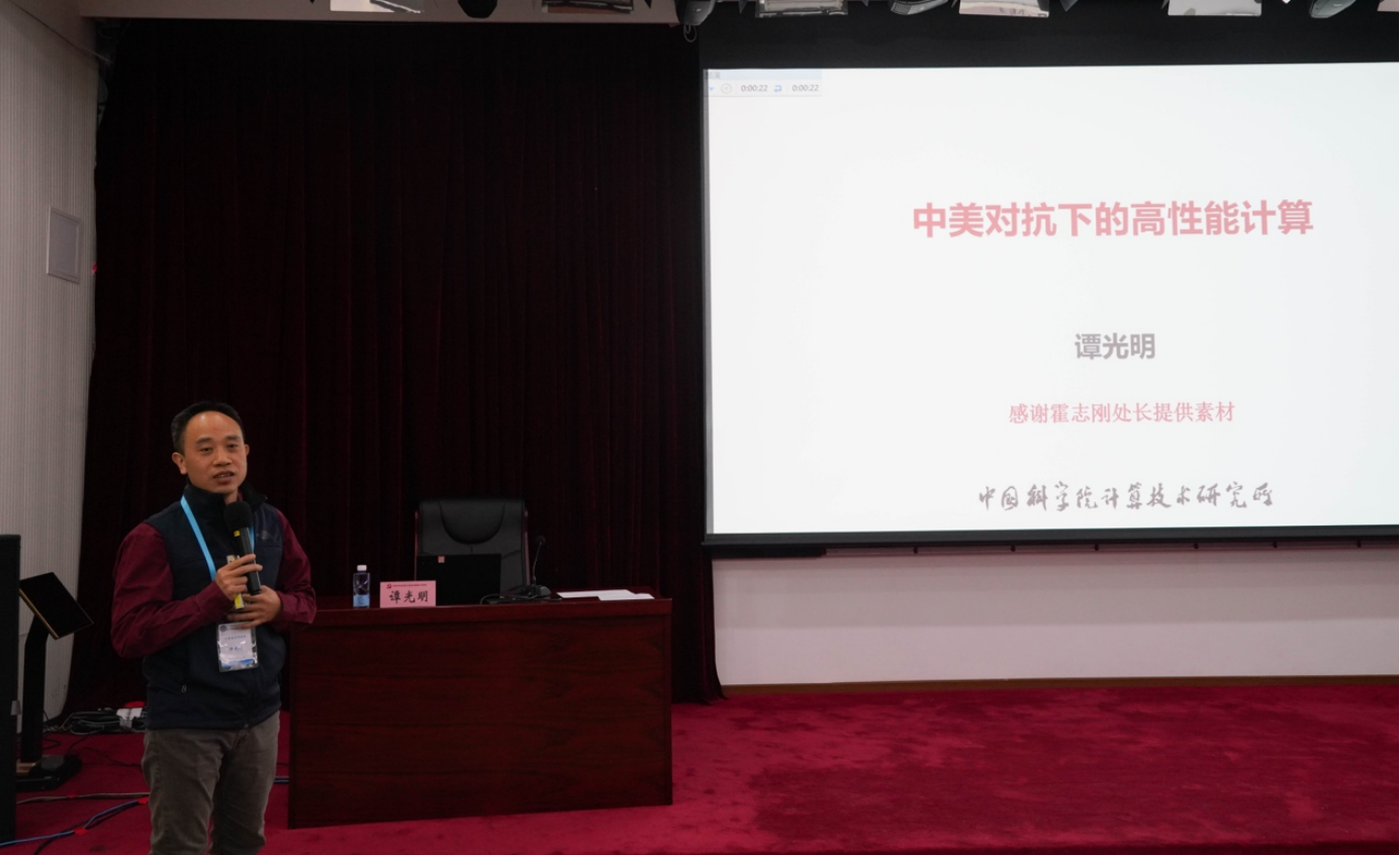 计算技术研究所谭光明学员以《中美对抗下的高性能计算》为题,结合中美在高性能计算领域长期竞争的发展态势,探讨了在新的技术革新时期和美国技术断供条件下,中国高性能计算技术发展战略中,基于毛泽东思想指导的路线选择,并进一步分析了高性能计算系统面临的能耗挑战和在人工智能时代重大应用的机遇,促进学科交叉融合发展。