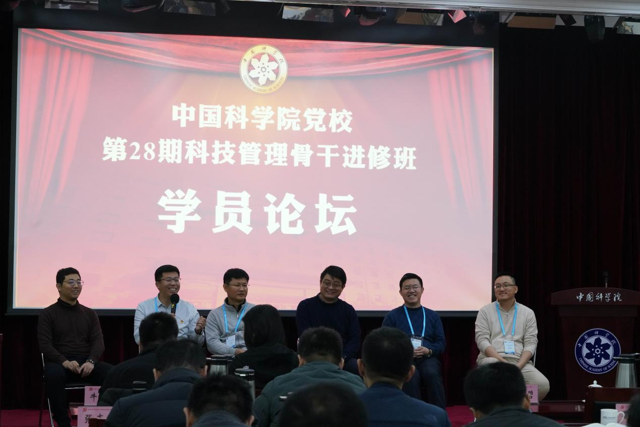 2025年12月3日上午,中国科学院党校第28期科技管理骨干进修班第六期学员论坛在雁栖湖校区举行。论坛以“锚定科技前沿——材料创新与资源环境可持续发展”为主题,由数学与系统科学研究院丁晓蕾学员主持。六位来自不同研究单位的学员围绕核聚变关键材料、新型制冷储热材料、稀土资源高效利用、大口径发射镜研制、研究单位科研成果转化及发展方向等主题,介绍了各自研究单位的概况、前沿进展、管理支撑与创新成果。